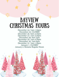 Bayview - 705-733-9000 Monday - 7:00am-4:30pm Tuesday-Friday - 7:00am-6pm Saturday - 7:00am-4:30pm Sunday - 9:00am-3:00pm